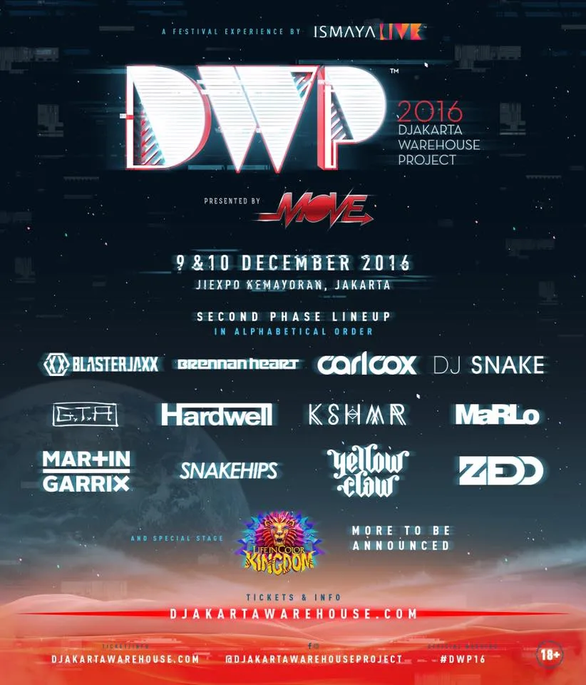 The 2nd phase line-up for this year’s Djakarta Warehouse Project (DWP) was just released! Joining the previously announced dance music superstars are none other than Blasterjaxx, MaRLo (#trancefamily where you guys at?), Carl Cox, Brennan Heart (hardstyle represent!), DJ Snake, and more.