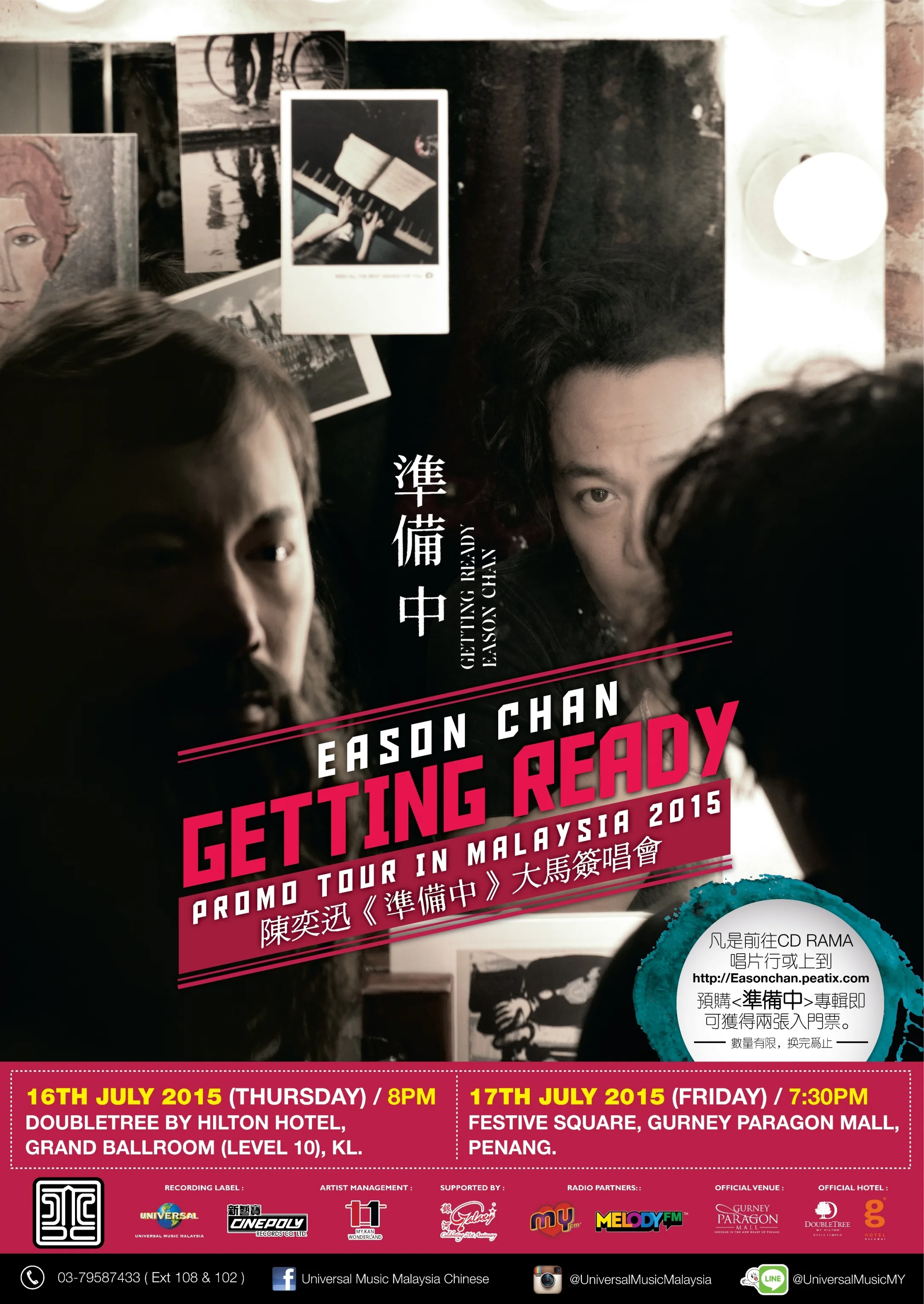 For further enquiries, visit Universal Music Malaysia Chinese’s Facebook page or dial 03-79587433 (Ext: 102/108).