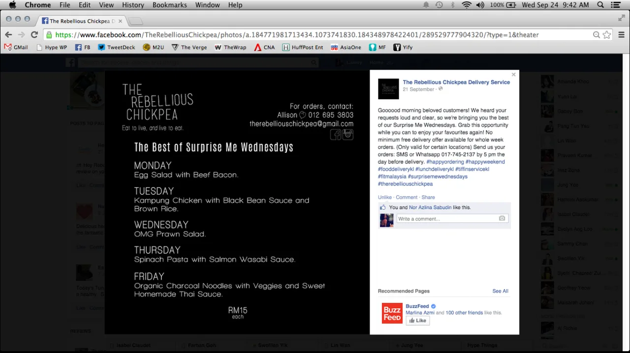 From healthy meals that are priced at RM15 each and good-for-you snacks, everything is made fresh. Their menu varies every week (yay!) and delivery is free of charge to those living in the Klang Valley.