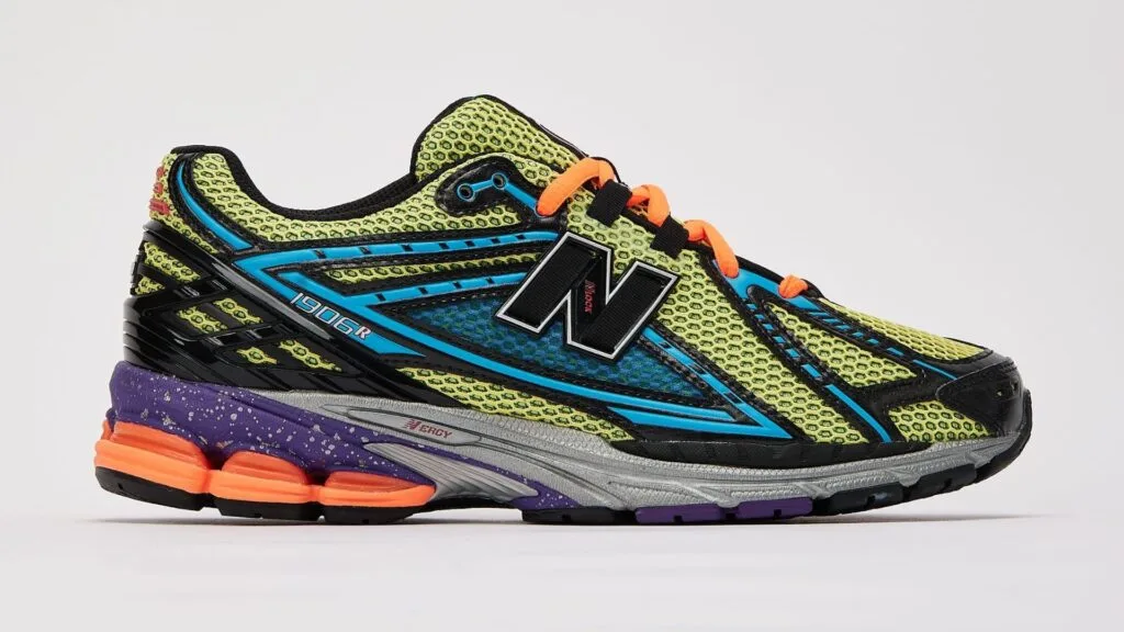 This brilliant sneaker is meant to capture “the allure of space exploration” through its vibrant colourway. For starters, the mesh upper comes in a bright lime yellow with streaks of black stretching across and inside the shoe. Adding to the mesmerising display of colours is the interplay of synthetic overlays in bright blue.