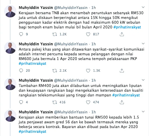 Here are the highlights obtained from Muhyiddin’s announcement: