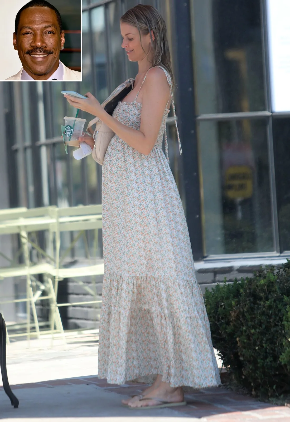 Eddie and and Paige, 39, started dating in 2012. She was recently photographed with her growing baby bump in a floral maxi dress. The Australian actress kept her hair down and had a smile on her face while looking at her mobile phone.