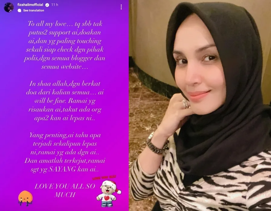 Actress and singer Fiza Halim responds to the false rumour circling on social media recently, due to an Instagram picture of her at a well-known local hotel. An anonymous TikTok user shared a now-deleted video of an article screeenshot implicating the former ELITE member of committing immorality in public with her ‘client.’