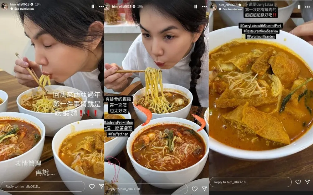 After finishing her meal, Ella then posted a photo of her looking very satisfied and rubbing her belly. The captions of the photo wrote, “the consequences of eating too fast”, prompting fans to coo over her adorable reaction. Besides chowing down on bowls of noodles, the S.H.E member also had her first yee sang of the year. In true Malaysian fashion, she even shouted out “Heng Ah, Ong Ah, Huat Ah” while tossing the dish.