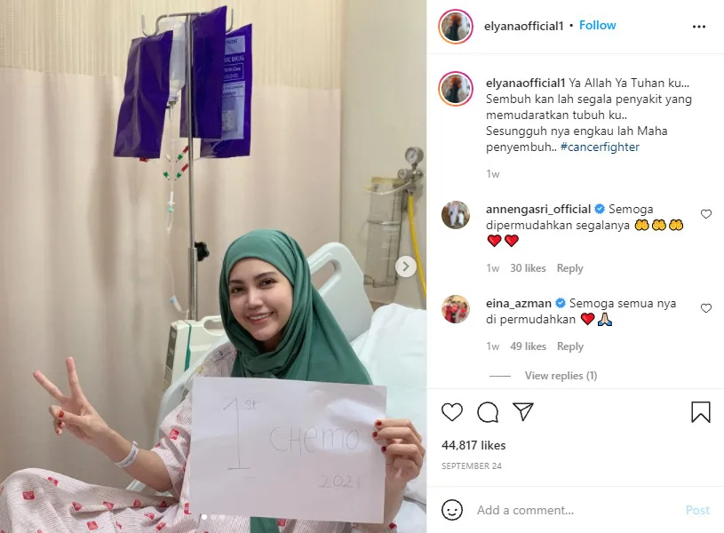 Artist Elyana Emrizal (34) has been fighting cancer for over a decade. She recently underwent her first chemotherapy session and is awaiting her second on Friday (8th October). Shockingly enough, the drugs for her second chemo will cost RM50,000 per treatment.