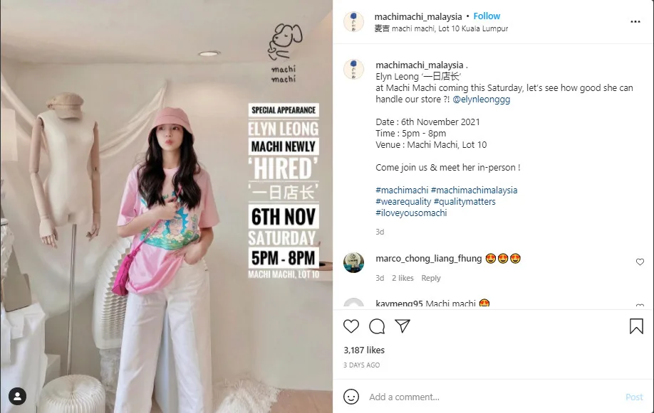 A few days prior, well-known milk tea shop Machi Machi made a special announcement on their socials. Malaysian influencer Elyn Leong had been ‘hired’! Unfortunately, her job would only be for a day. It was basically a meet-and-greet for the 18-year-old influencer, but don’t be fooled. She had fans lining up for her in front of the store.