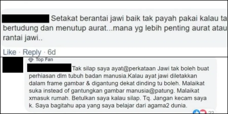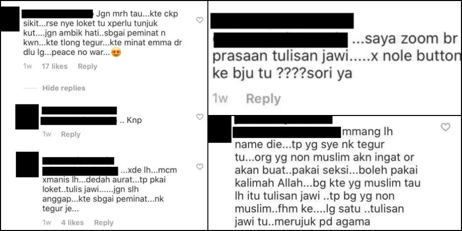 Based on the photos above, the 27-year-old celebrity was seen wearing a name pendant with her real name ‘Fatimah’ spelled in Jawi (Arabic) letters. As a result, the comments section has been flooded with mixed reaction among cybernauts.