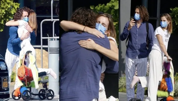 Emma was all smiles as she was photographed hugging her tycoon boyfriend, having just returned from their pre-Valentine’s Day trip to Mexico. She was seen in a casual white tee with the slogan Femme Liberté which translates as “free woman” and loose beige pants.