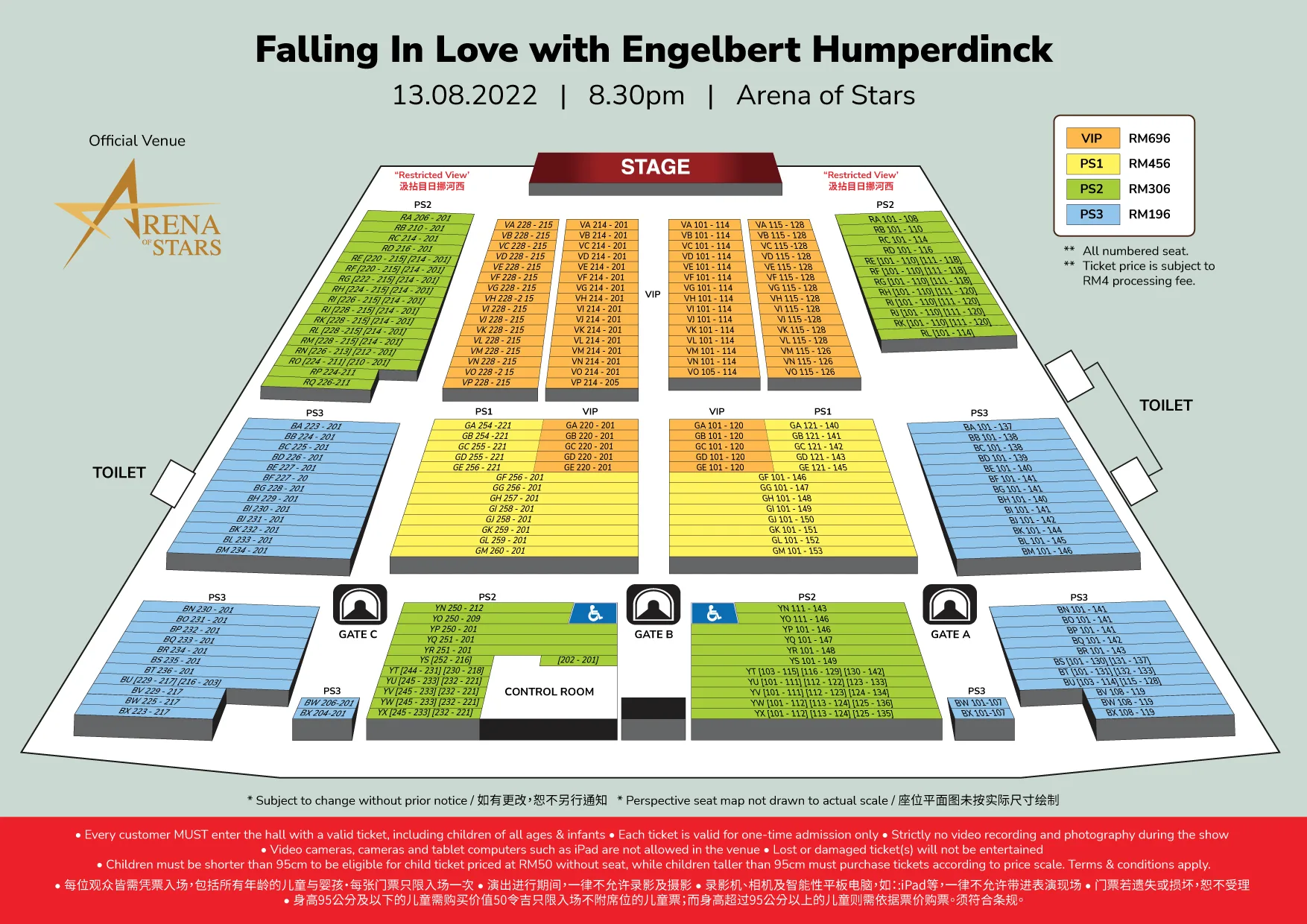 - Ticket Prices: RM696 (VIP), RM456 (PS1), RM306 (PS2) and RM196 (PS3)