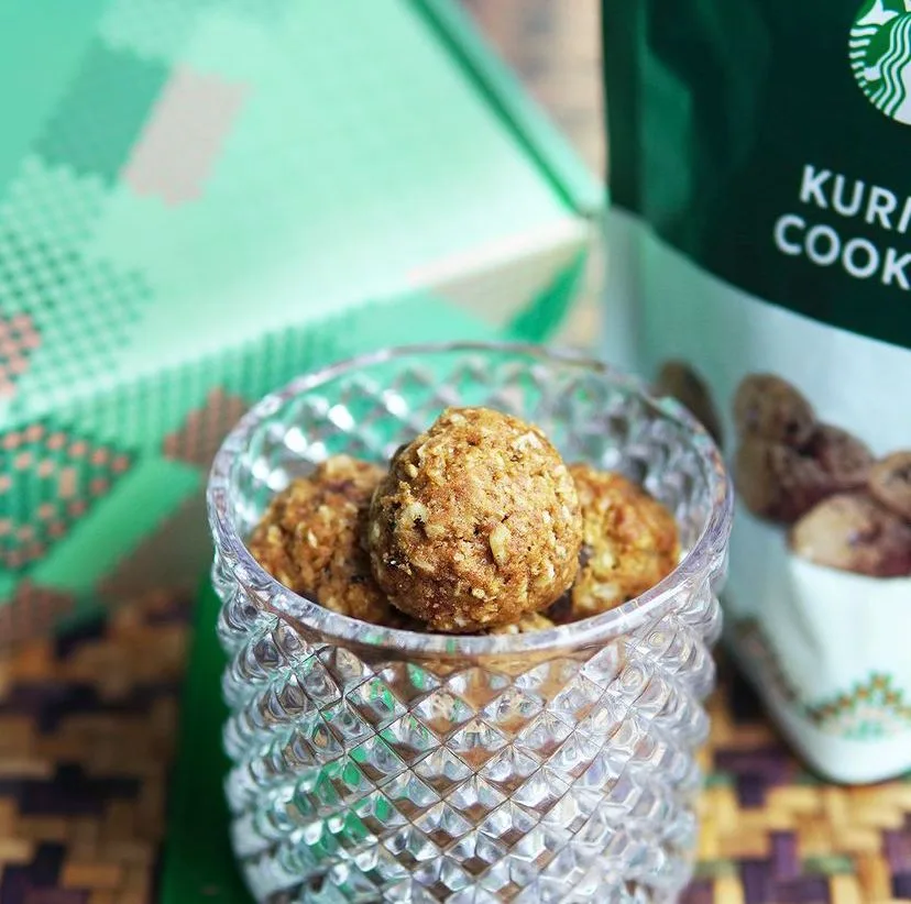 - Kurma Cookies – Round, bite-sized cookies with bits of dates and oats. Combining the sweet flavours of dates with a touch of the chewiness and nutty flavour from oats, Starbucks is delivering you caramel sweetness with every bite of their kurma cookies.