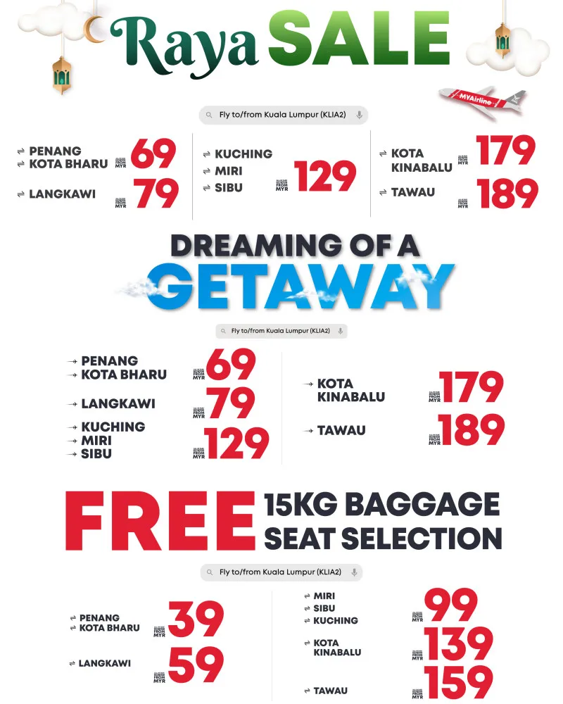 As seen in the posters above, all campaigns offer flights to 8 different locations: Penang, Kota Bharu, Langkawi, Miri, Sibu, Kuching, Kota Kinabalu, and Tawau. Still, you have to be quick as the Raya Sale campaign’s bookings are from now until 15th February while the Dreaming of a Getaway campaign’s bookings are until 19th February.