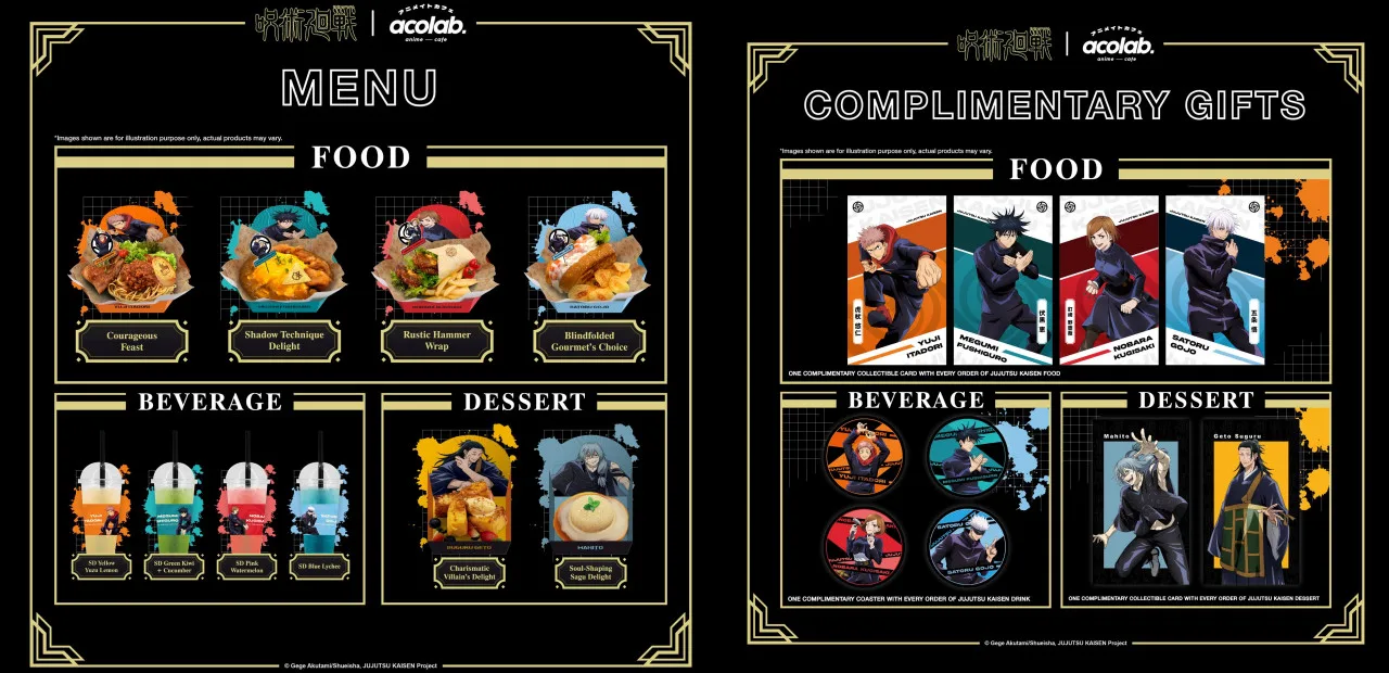 Thus, prepare yourself for some other-worldly gastronomic experience – from fantastical yummy feasts to sweet sorcerer treats, leaving fans to transport into Gege Akutami’s imagination! Apart from enjoying your mystical meals, fans are subjected to a complimentary gift with each purchase from the anime cafe menu! Rest assured, the meals listed on the menu are free from pork, alcohol and lard so it is safe for Muslims to consume.