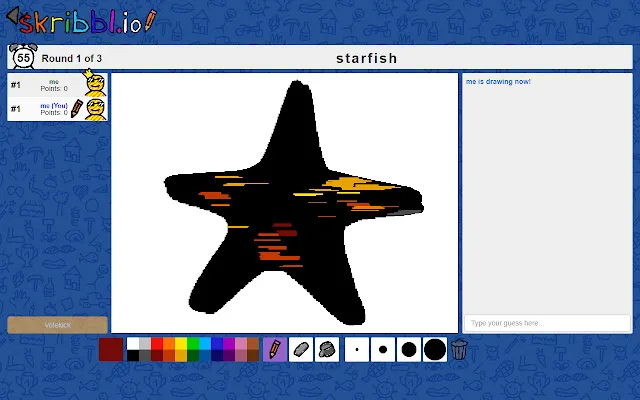 A revolutionized concept of Pictionary, Skribbl.io takes over its predecessor in a fun, online format. Get a link, pick a name for yourself, choose the outlook of your avatar and the guessing games begin! Depending on who starts drawing first, the other participants are required to guess the object via the chat box feature provided. Points will be given to the fastest person to give the correct answer.
