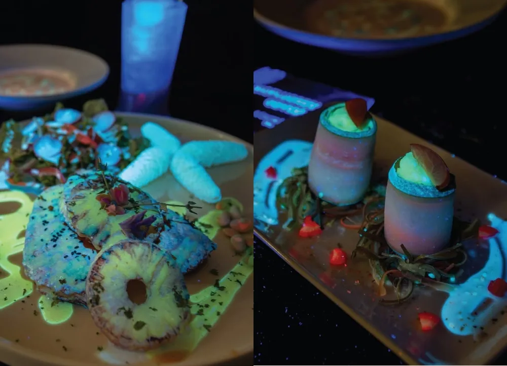 After all that fun, a good meal is needed to replenish our energy. Well, not to worry—Entopia’s Tapestree Café offers some stunning meals that are sure to satisfy. These dishes are a treat for both the stomach and the eyes. In keeping with the bioluminescent theme, this delicious food also embodies the glow-in-the-dark aesthetic. It’ll light up your plate and add that extra pizzazz to your meal.