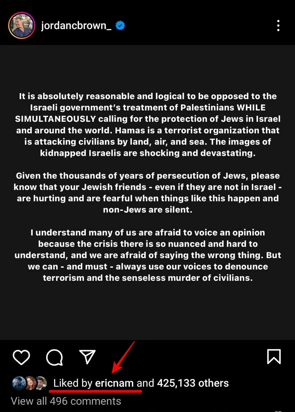 As seen in the screenshot below, Eric was one of the celebs who Liked the post, indicating that he’s staying “neutral” regarding the war. This did not sit well with Malaysian fans who have expressed disappointment in the DIVE podcast host as many commented that they will no longer be supporting him.
