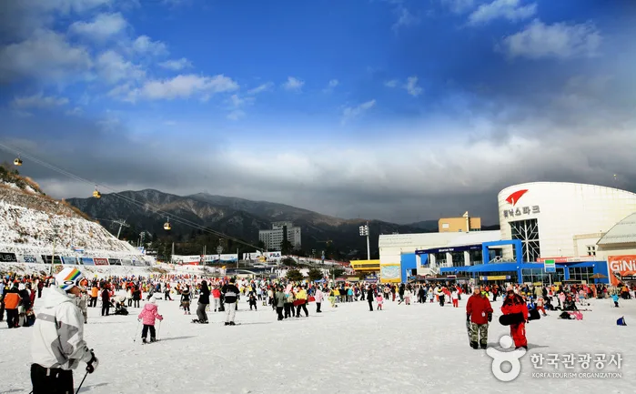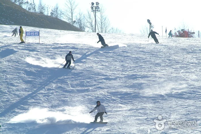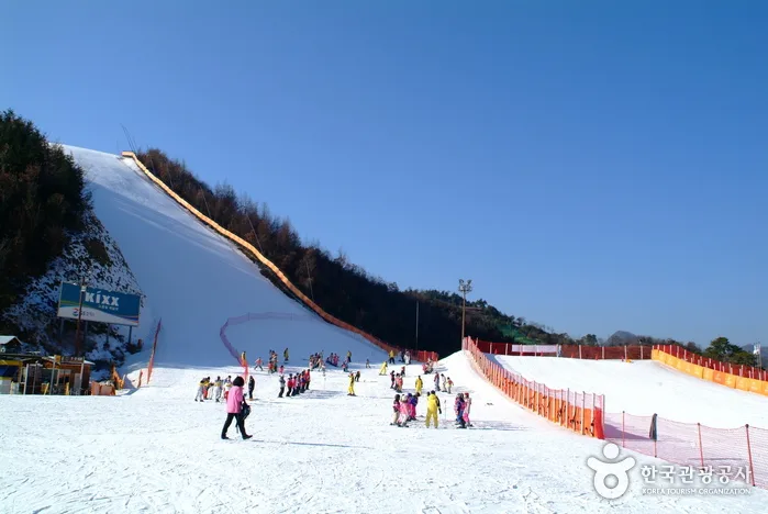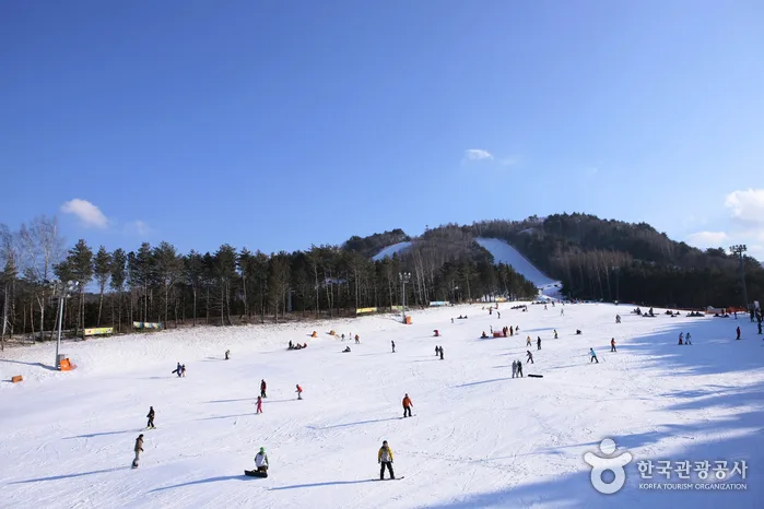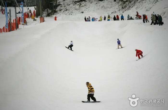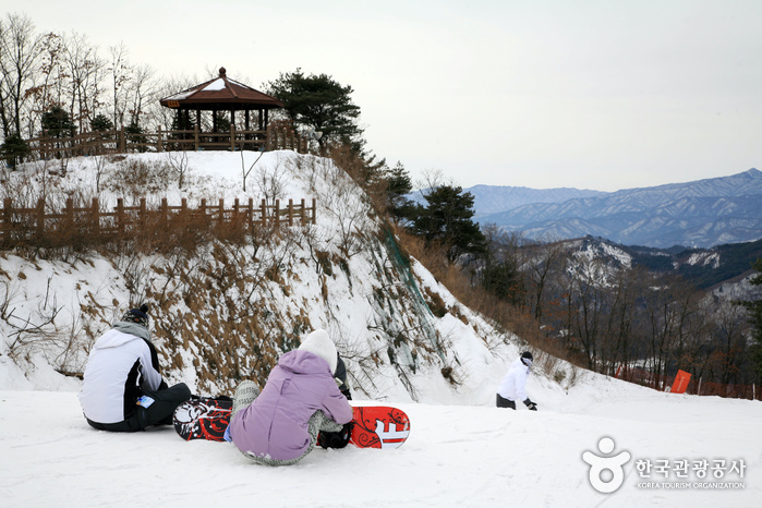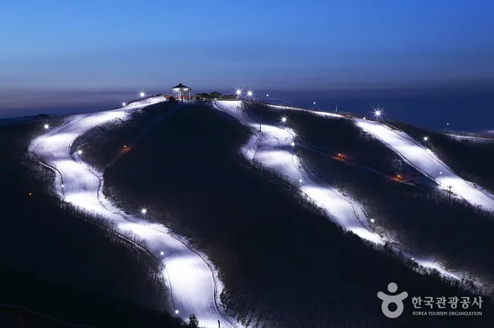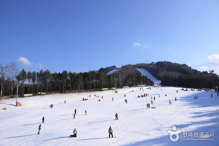 It only takes 40 minutes by train to get to Elysian Gangchon from Seoul. Gangchon guarantees exciting and comfortable skiing with 1,000m for beginners, intermediate skiers, and experts on its valley slopes and ridgeline slopes. Its theme park, which consists of 10 themes, is another unique attraction of Gangchon, whereas the Gangchon Channel Park is an extreme park that takes anybody, from beginners to pro skiers, to the world of fantastic extremes. Night skiing operates until 2am.