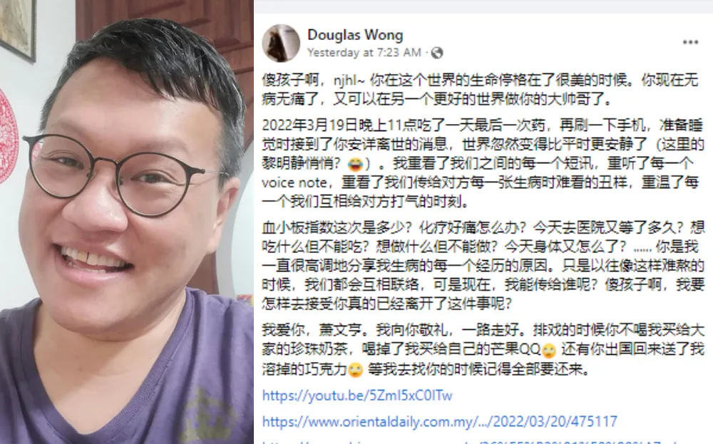 Evan’s mentor and friend, Douglas Wong (王衍任) was one of those who took to socials to mourn his passing. He had apparently known about Evan’s illness and had been supporting him during the tough time. Douglas stated they had shared their difficulties with each other as a way of seeking support. “But now, who can I pass it on to?”