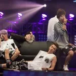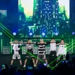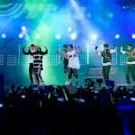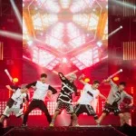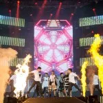 During the performance of Boy Republic’s remix of “Video Game”, 15-second mobile phone clips that were posted on Instagram with the #worldstagemyfancam were featured on the screens. A lucky fangirl, who was chosen to become their “girlfriennd” was unveiled during the performance for “Dress Up” as well, leaving the audience screaming with jealousy. Towards the end of their set, the group once again hyped up the crowd with the fan favourite, “Party Rock”.