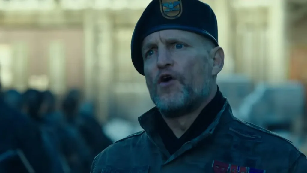 As they approach the Colonel’s outpost, a patrol ambushes Caesar and Luca, capturing the former and killing the latter. There he meets the Colonel head-on, expressing remorse for killing his family as he was after him. But he also explains that the Simian Flu had mutated, causing the infected humans to become feral. Those who exhibit symptoms, even his own men and son, are to be killed, something that his superiors and the military disagree with.