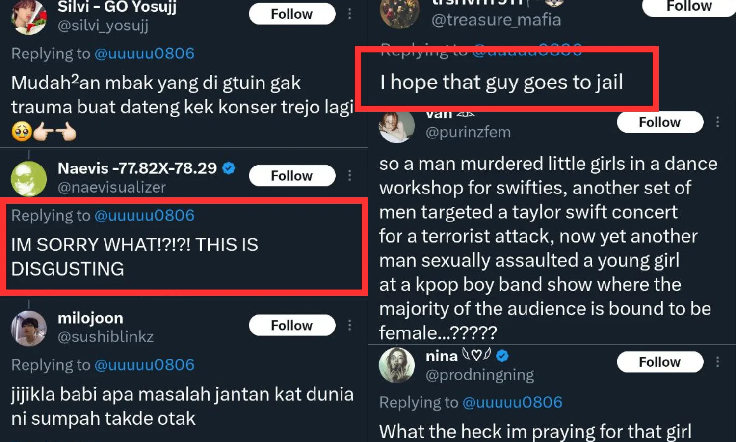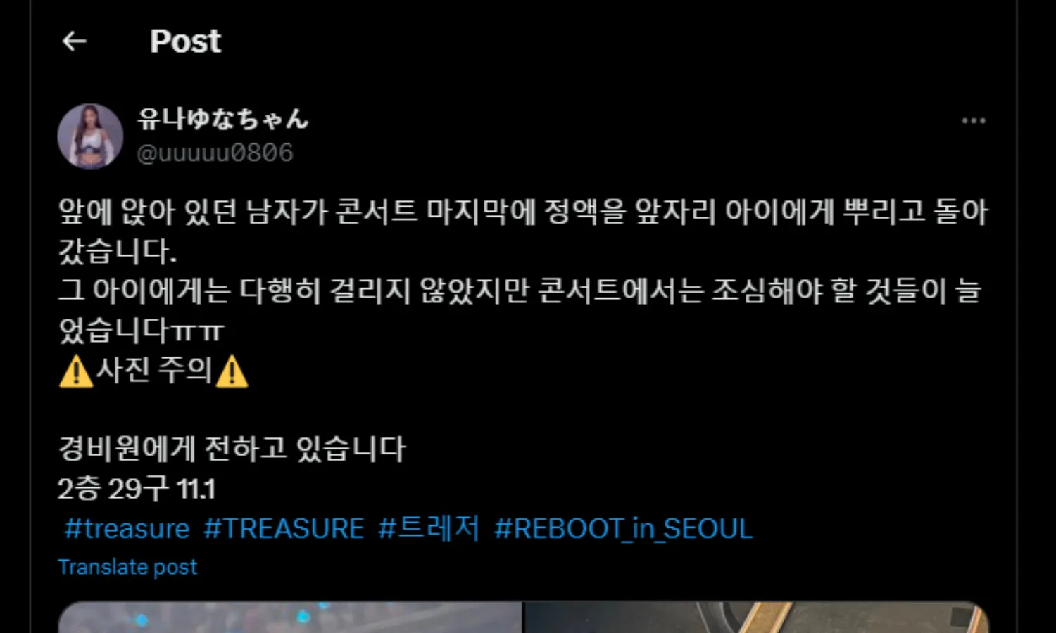 Later, the fan provided an update, sharing that the young girl had asked them to check her back due to the man’s immoral act. Fortunately, the fan did not find any unwanted substances on her, but they did notice the remaining fluid on the floor nearby. Although the incident was reported to security, the concert organiser and YG Entertainment have yet to release an official statement or follow-up on the issue.