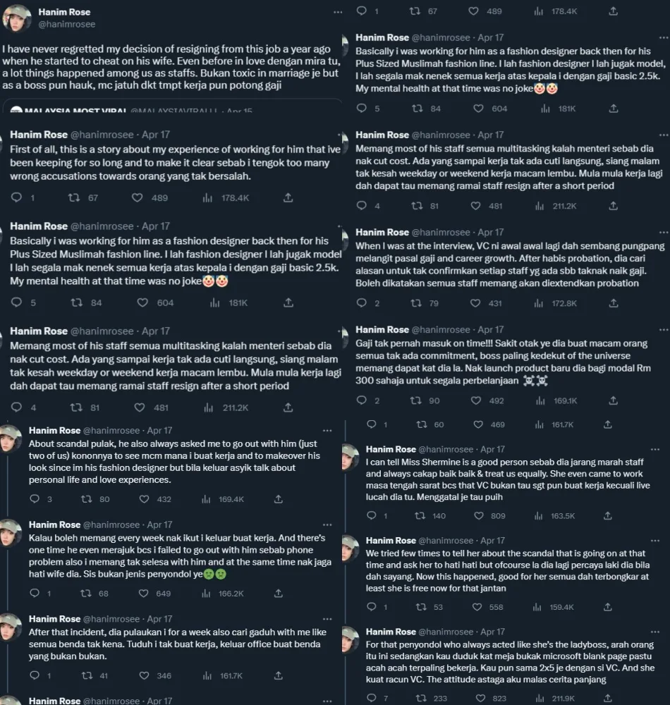 The netizen explained that she once worked as a fashion designer at the entrepreneur’s company where she was only paid RM2.5K despite the amount of work she’s done as well as working overtime. “We couldn’t even go on leave or holidays. We worked day and night even on weekends. It’s no wonder people quit within a short period,” the woman said. She also claimed that workers’ probation would be extended as the founder kept delaying their confirmation letters.