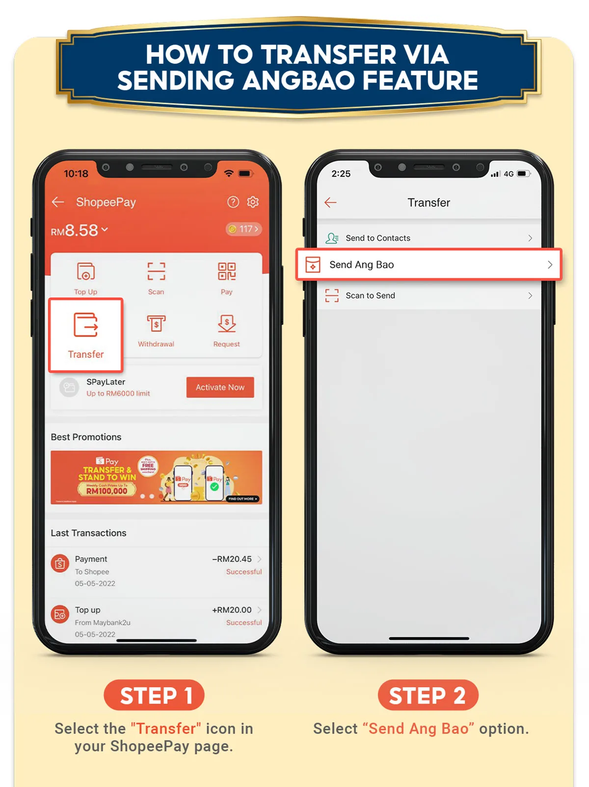 - Click on “Transfer” and select the “Send Ang Bao” option.