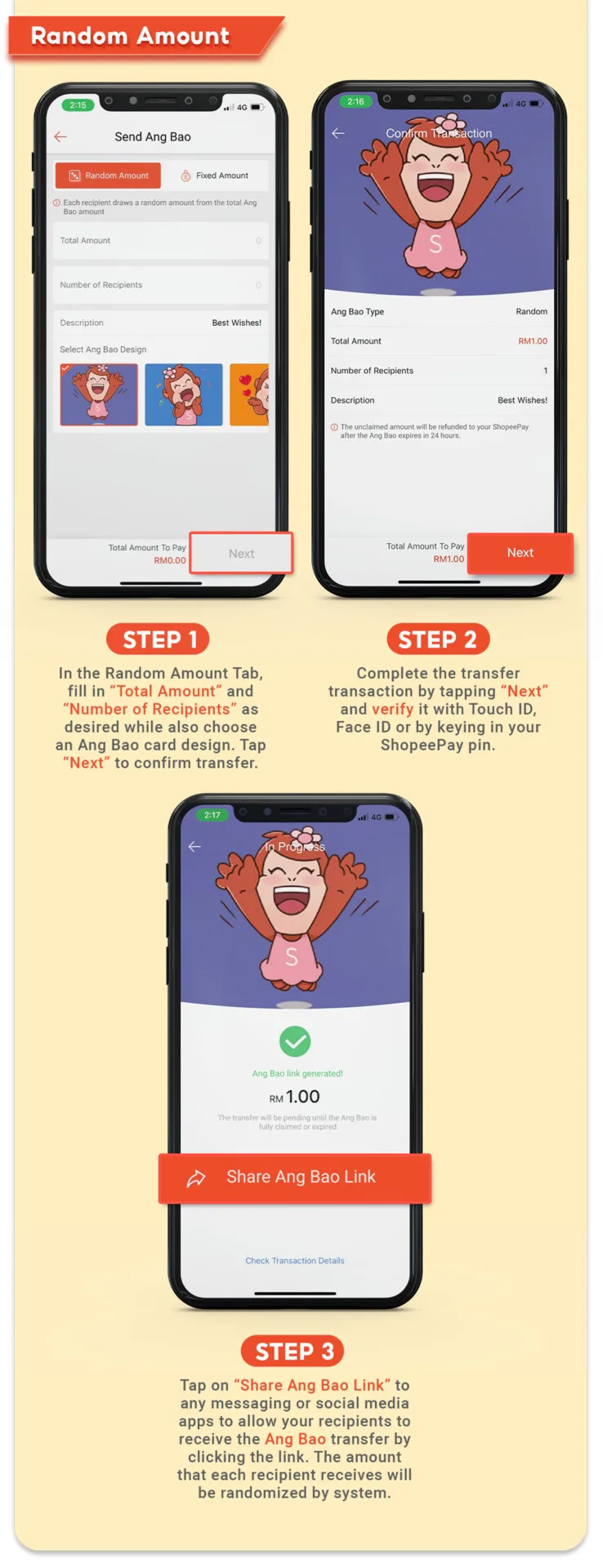 On 1.8, ShopeePay users who send an Ang Bao to a minimum of 30 ShopeePay users are eligible to receive RM10 ShopeePay credits in return.
