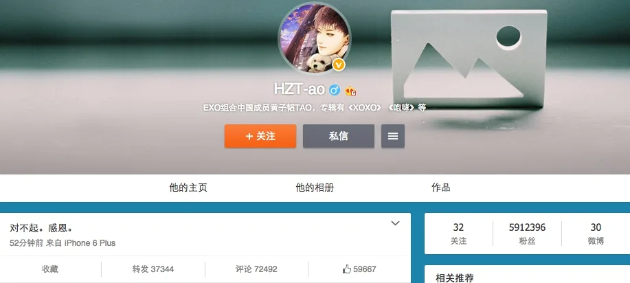 “I’m sorry. Thank you,” Tao wrote on his personal Weibo account.
