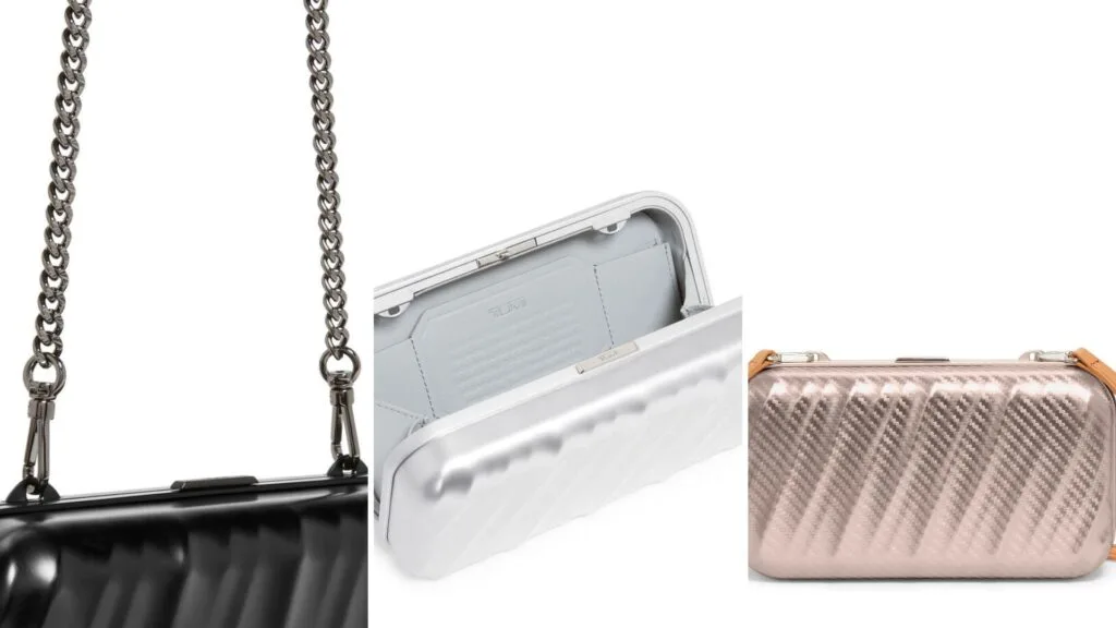 If you’re looking for a more fashion-focused bag that is perfect for galas and balls, TUMI has you covered. The latest collection’s minaudiere is out to make a statement. Available in three colorways and with two detachable shoulder straps, this versatile piece is style-ready for nights out and special occasions.