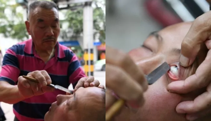 An “ancient technique” that uses a sharp blade to clean the dirt in a person’s eyes still exists in China. The exact term is called eyeball scrapping, and the trade is still practised by Sichuan barbers.