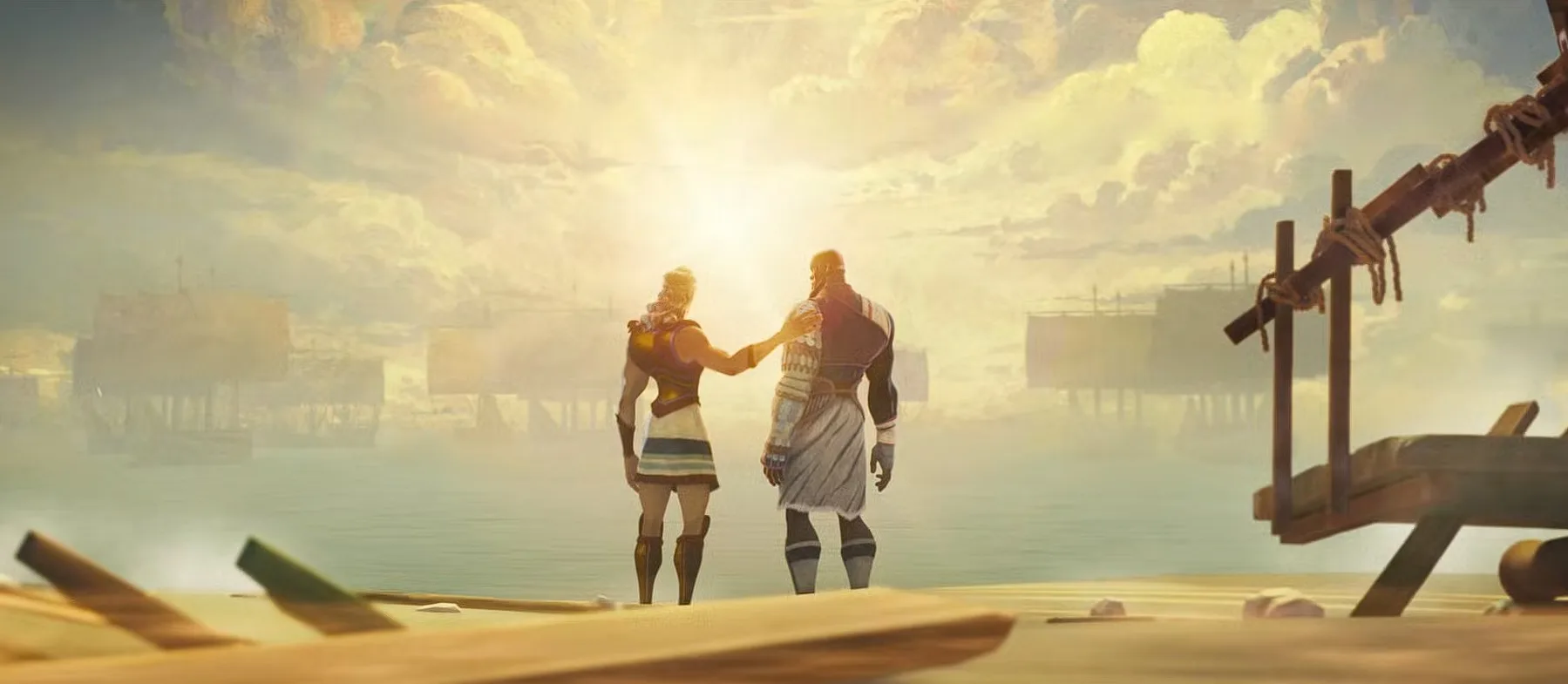 Source: Disney+That night, in a rare lull between battles, the two share quiet reflections. Memnon recounts his journey of how the Achaeans welcomed a wanderer and gave him purpose. He jokes that he’ll be the one to place coins over Achilles’ eyes when his time comes. Their bond feels unbreakable.