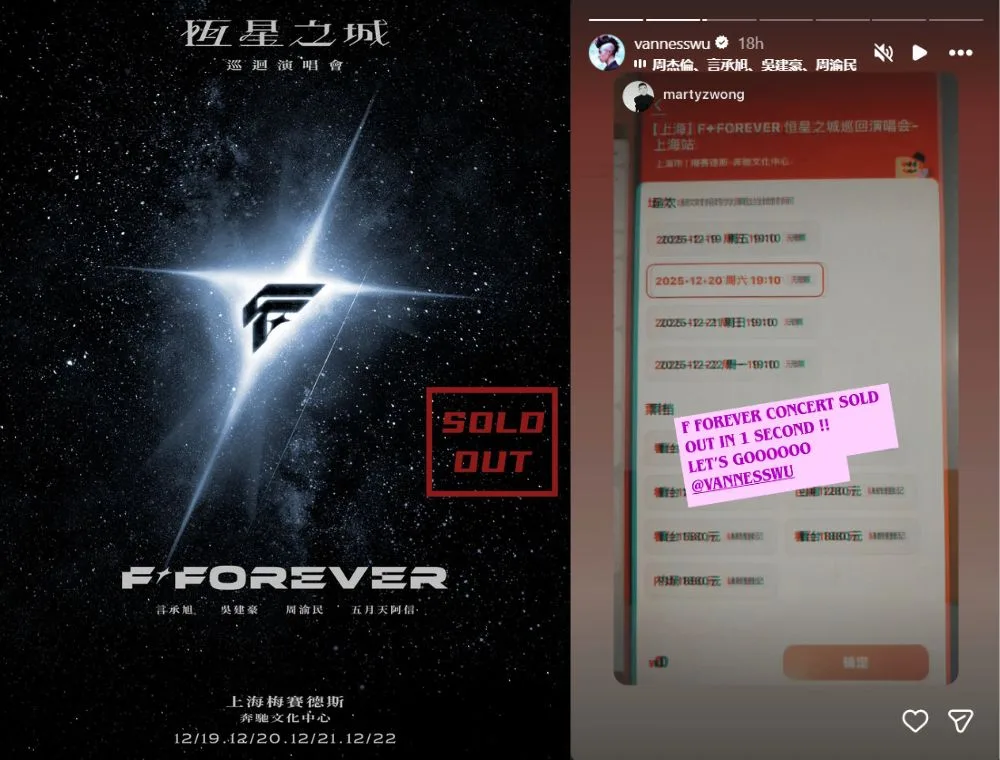 Tickets for the tour’s Shanghai shows went live yesterday (Wednesday, 10th December 2025) at 3pm sharp. The Shanghai stop features four shows, held consecutively from 19th to 22nd December 2025 (Friday to Monday). Shockingly, the tickets for all four shows sold out almost instantly.