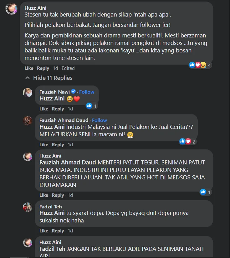 “Even though the conditions imposed are quite strict in terms of the number of ‘followers’ of the artist, for me, it is not a major problem. Instead, it should be considered as a challenge for every production company in producing better quality work. At the same time, the drama produced also features actors who are popular so it’s a bonus,” Fadzil added in his statement to Harian Metro.