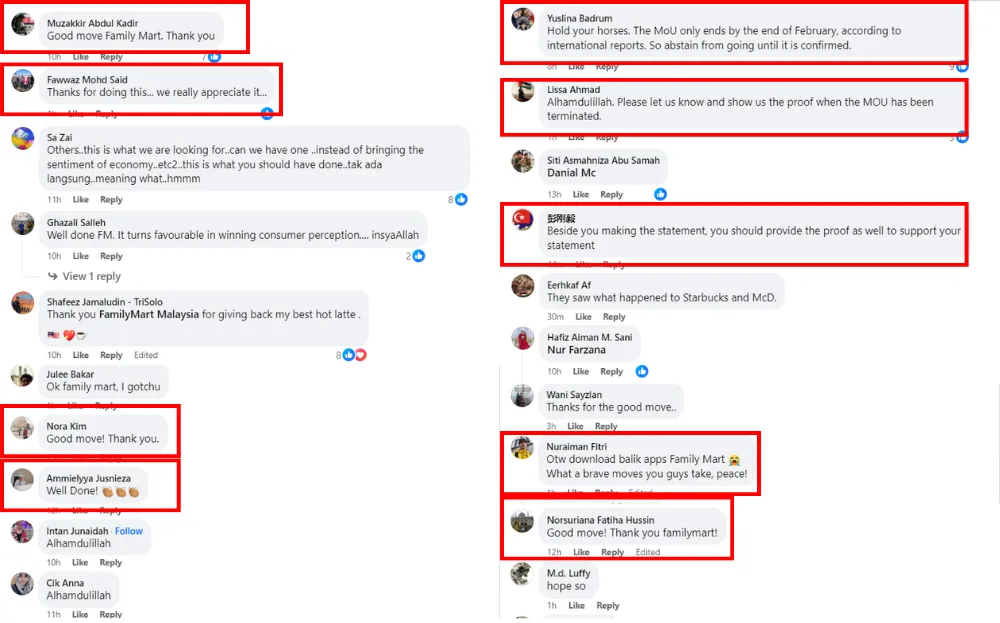 The statement received tons of positive responses, most of which were from FamilyMart customers. Many praised FamilyMart Malaysia for addressing the boycott and reaffirming their stance. However, some noted that the Itochu-Elbit partnership is still active until the end of February, so customers “should still boycott the company until the end of the month”. Others also ask FamilyMart to prove they no longer have ties with the defense contractor to support their statement.