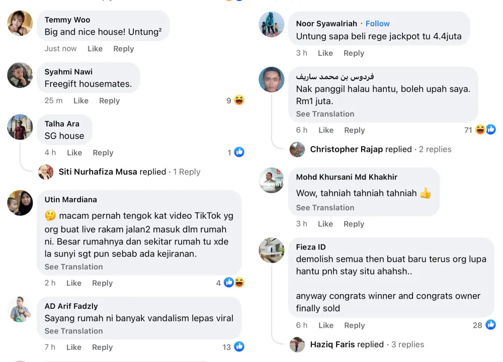 Looking back at the Facebook post, a variety of mixed opinions flood the comment section. Many congratulated the new owner for getting a luxury house for such a price. Many were also congratulating the owner for finally being able to get rid of the house. There were also those who cracked up jokes about the ghosts and spirits that live within the house.
