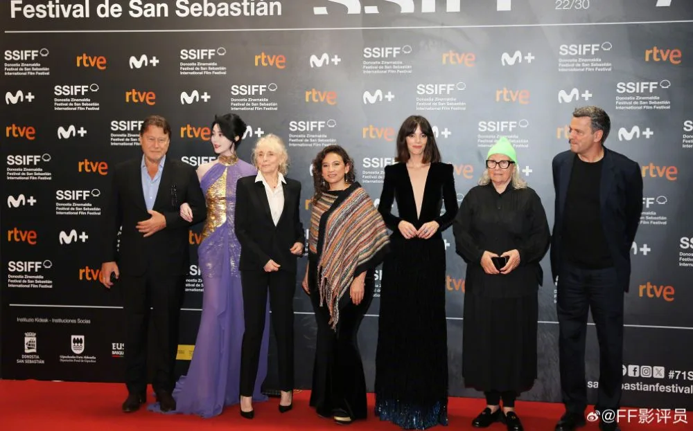 The 42-year-old actress recently completed her duty as a judge for the 71st San Sebastián International Film Festival and made an appearance at the closing ceremony for the event. The star stood out from the rest of the judging panel as she walked down the red carpet dressed in a custom purple and gold dress with see-through elements.