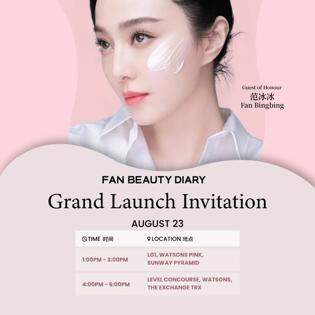 On Monday (18th August 2025), Watsons Malaysia announced that Fan Bingbing’s Fan Beauty Diary is officially launching in their stores later this month. Adding to the excitement of the debut, the Chinese actress will be the guest of honour at the grand launch ceremonies at Watsons Sunway Pyramid and Watsons The Exchange TRX. The two launch events will take place on 23rd August 2025 (Saturday).