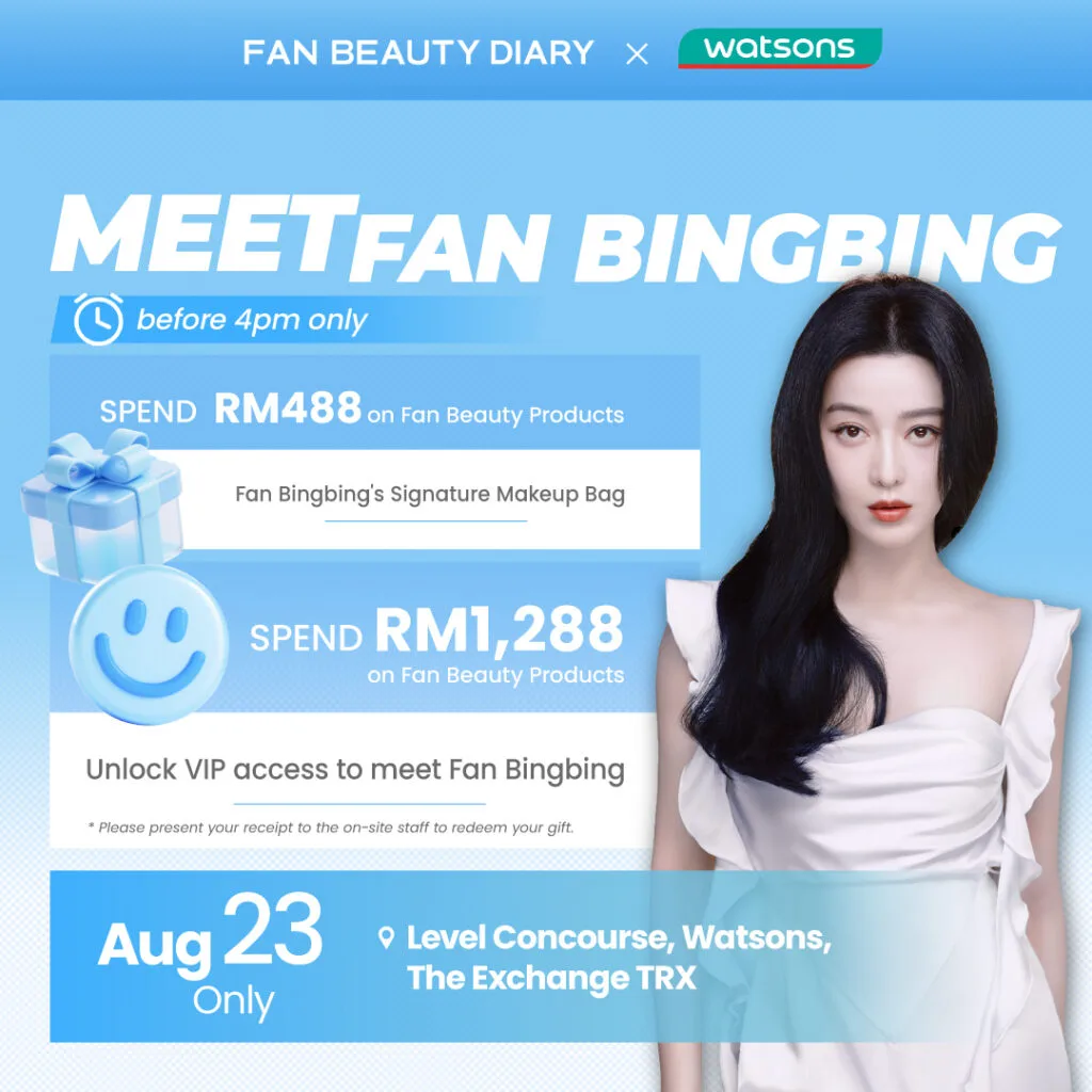 Fans will have the chance to meet the star and be among the first to experience Fan Beauty Diary in Malaysia. There will also be exclusive gifts and photo cards, specially handpicked by Fan Bingbing herself. Fans can also unlock more gifts and VIP access to meet the actress up close and personal by spending a minimum amount of Fan Beauty Diary products at Watsons Malaysia stores.