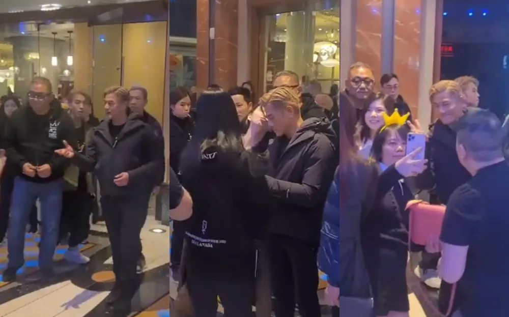 “Can you (give us) your autograph?” they asked in Cantonese. “We are from Hong Kong.” Aaron kindly obliged them, and even held his hand out for their item to autograph. As soon as he did so, fans took that as the green light to approach.