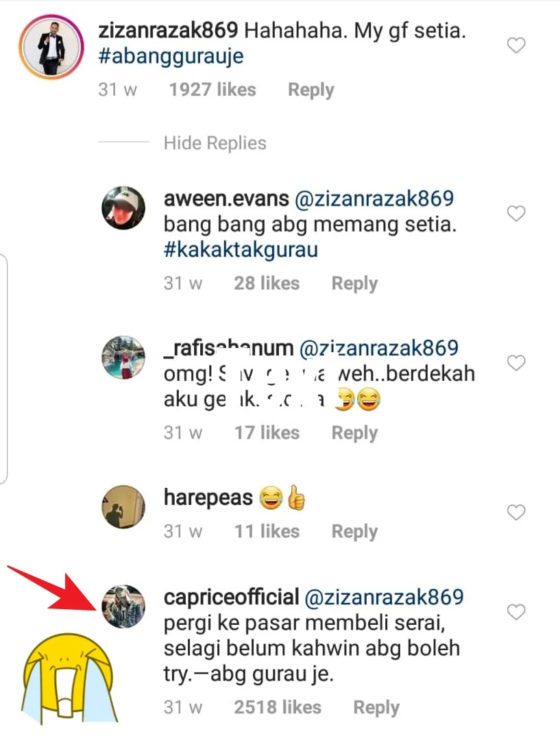 Zizan responded to the video saying that his girlfriend is loyal to him, and Caprice came out with the ultimate comeback in a “pantun” form.