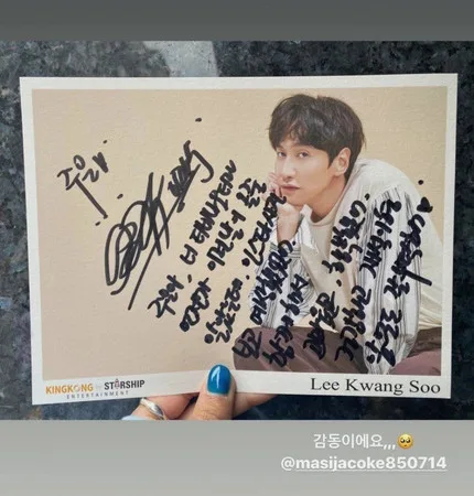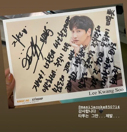 To Jung-kook’s stylist, Choi Ji-sun (최지선), Kwang Soo said he found it odd to give her his signature. “I have a lot of memories with you,” he wrote. “I was so thankful and happy every time.” As with Ju Eun, he wished her well and asked Ji-sun to look after Jung-kook. However, he had one more request for her. He jokingly asked her to text him about her neck tattoo. When Ji-sun replied him on Instagram, she added the message, “Stop talking about tattoos,” which amused many.