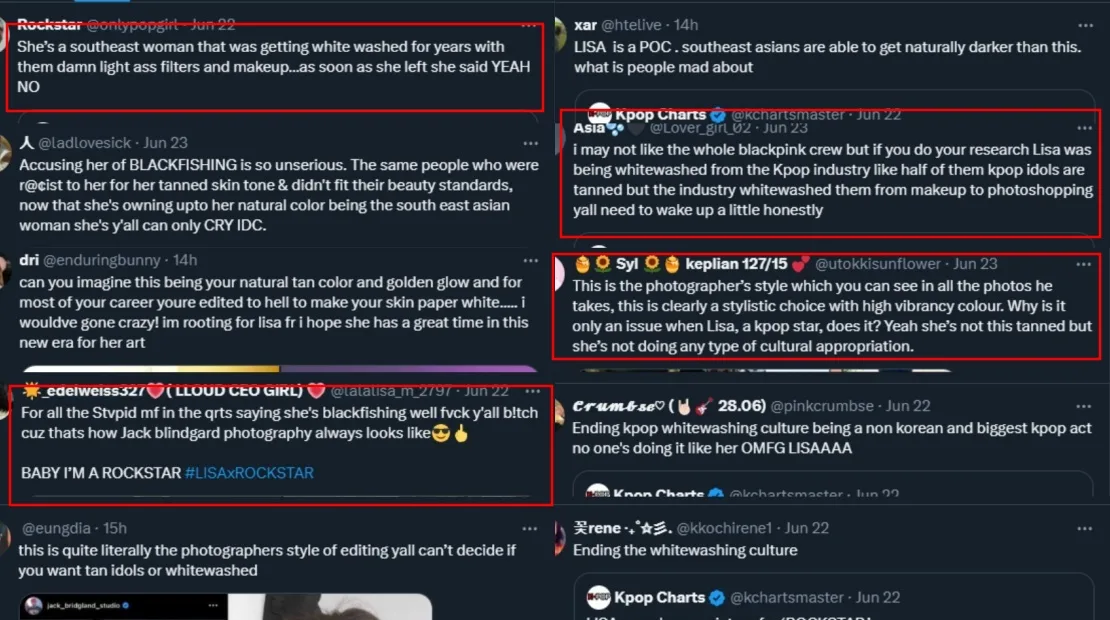 Of course, fans wouldn’t sit back and let their idol get hit with these accusations. BLINKs and Lillies came together to defend the “Money” hitmaker by reminding everyone that she’s a Southeast Asian woman who was born with naturally tanned skin. Some brought up old photos of the performer to prove that she’s always had this skin tone while others explained that K-pop artists are usually whitewashed in photos by Korean media.