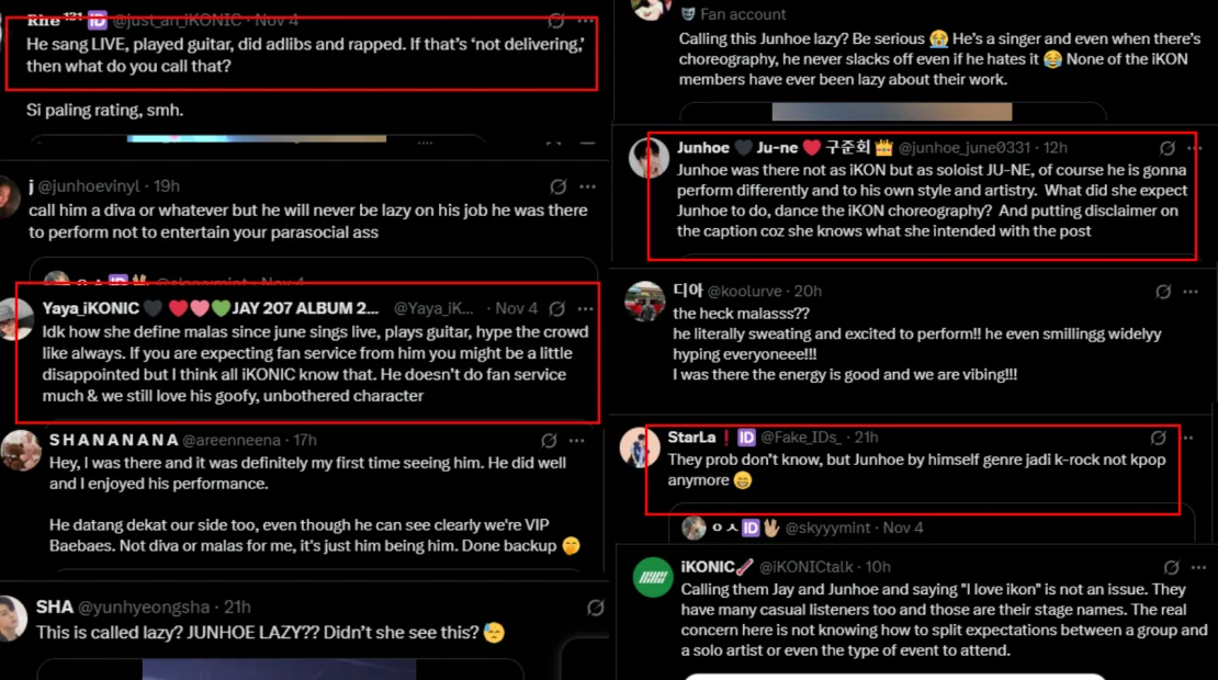 Fans also disputed the “lazy” claims, noting that the singer was singing and rapping live, playing an instrument, and hyping up the audience throughout his entire set. Some also pointed out that JU-NE has a more introverted personality, which may explain the “diva” perception, though that’s something many iKONICs are already familiar with.