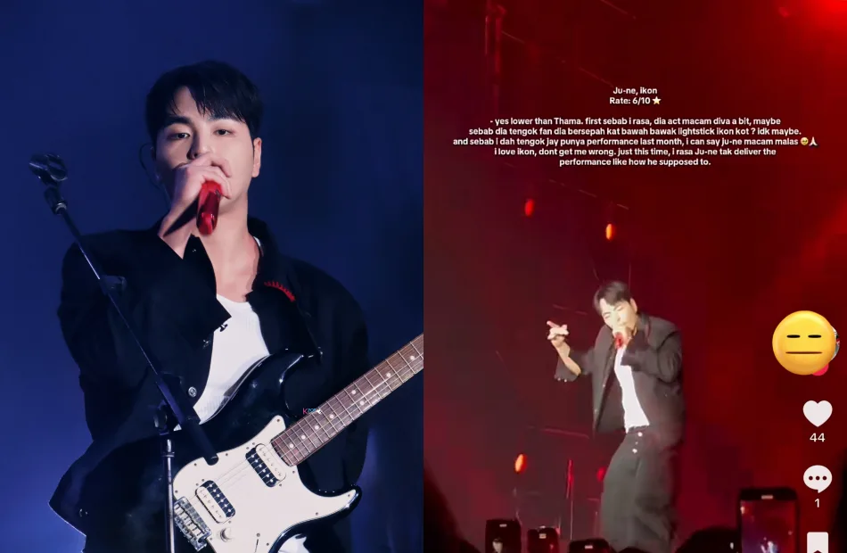 A concert attendee posted her ratings and comments on each act at the KFINITY Music Festival 2025 on their TikTok channel. When it came to iKON’s main vocalist JU-NE (구준회), the fan gave him a 6/10 rating and remarked that his performance was “lazy” compared to his bandmate JAY, who had performed in Malaysia last month. The user even went so far as to call the singer a “diva”, adding that he did not deliver his performance “like how he was supposed to”.
