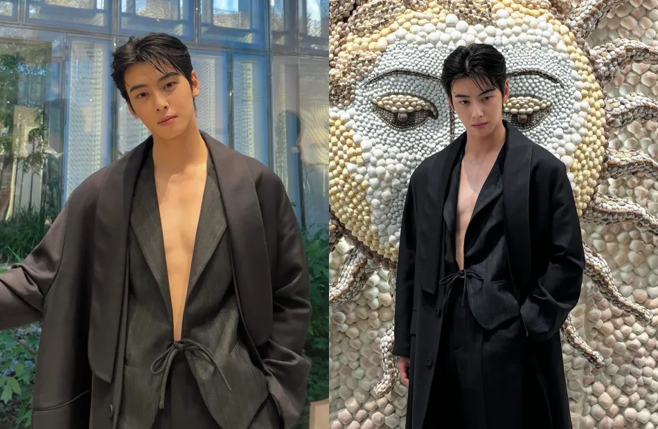 Cha Eun-woo along with other Korean celebs like actors Jung Hae-in (정해인) and Lomon (로몬) attended the Dior 2024 Dioriviera Collection launch event at the brand’s concept store in Seongsu-dong, Seoul yesterday (Wednesday, 29th May). As seen in the photos above, the idol was seen wearing a very revealing outfit which showed off much of his upper body. The vest-like top was only held together by a singular knot.