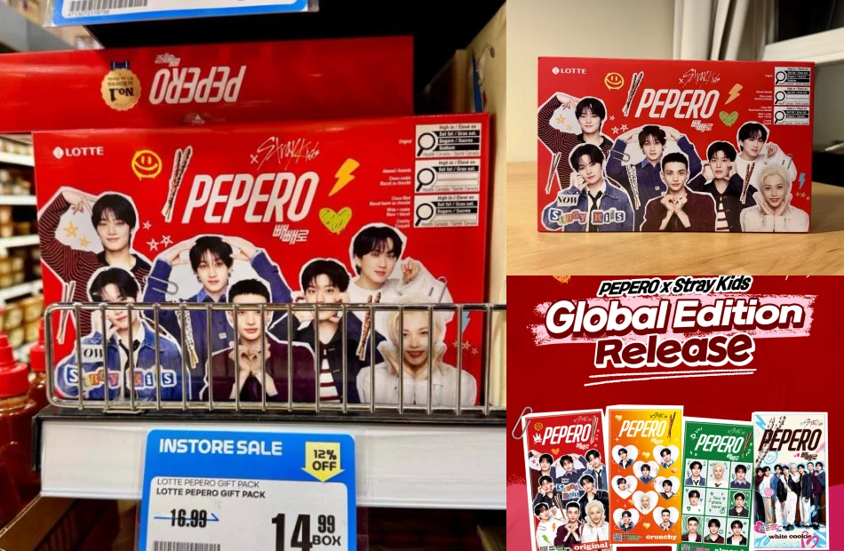 Over the weekend, photos circulated on social media showing PEPERO packages sold in stores in Canada that featured only seven members. As seen in the images, Han Jisung (한지성) was missing from the design. The posts also included a screenshot of how the packaging is supposed to appear, with all eight members present. The issue quickly went viral, with STAYs (Stray Kids fans) calling out the brand and its parent company, Lotte, for the design error.