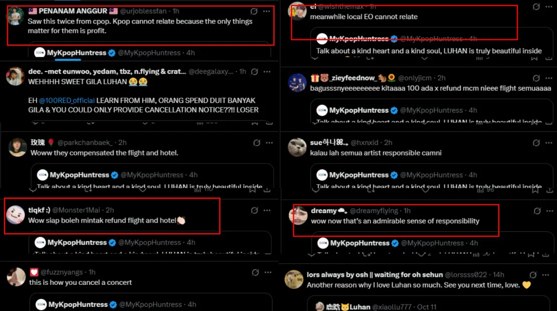 Not long after the announcement was shared, fans were overjoyed, praising Luhan and his team for being extremely considerate of those who might be financially struggling and needed their money back as soon as possible. Others urged local and international organisers, as well as K-pop agencies, to take note and follow the former EXO member’s example of how to show appreciation towards fans.