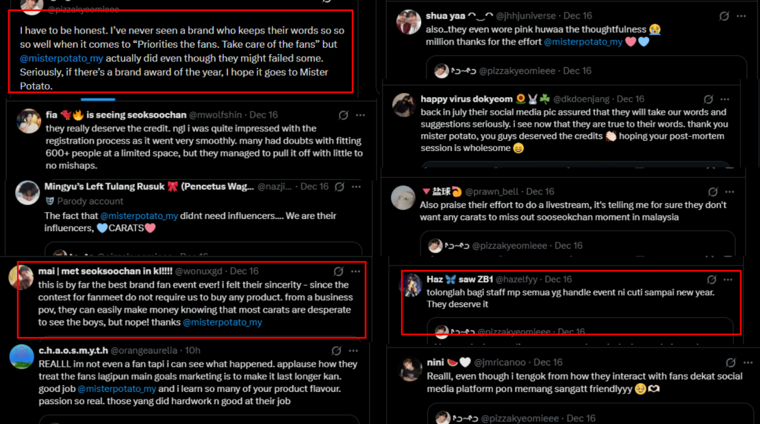 Many fans took to Twitter to praise the Mister Potato team and Mr Pang for looking after attendees, providing transparency, and clarifying details about the event. Some even described the fan meeting as the best they had attended so far, noting that everything ran more smoothly than expected — from registration and crowd control to ensuring fans were comfortable throughout.