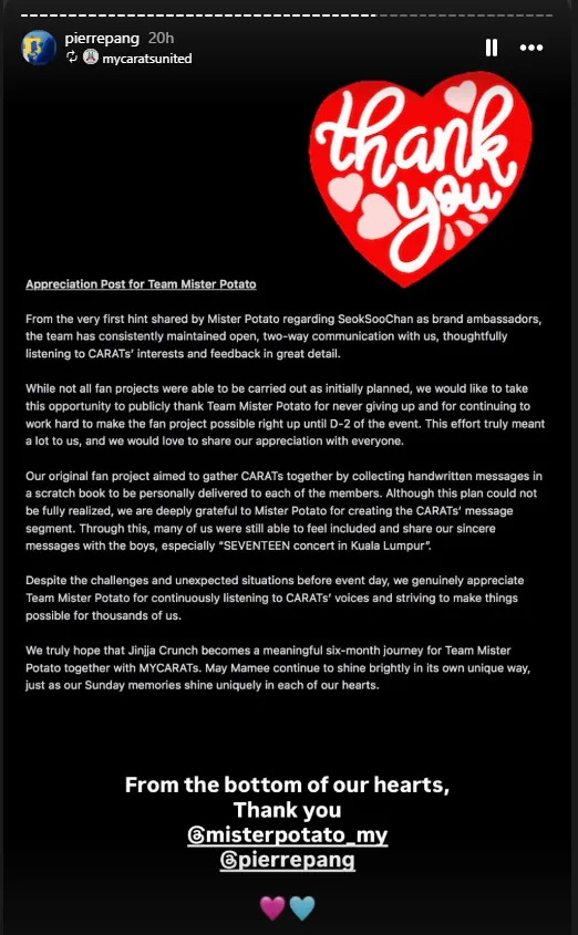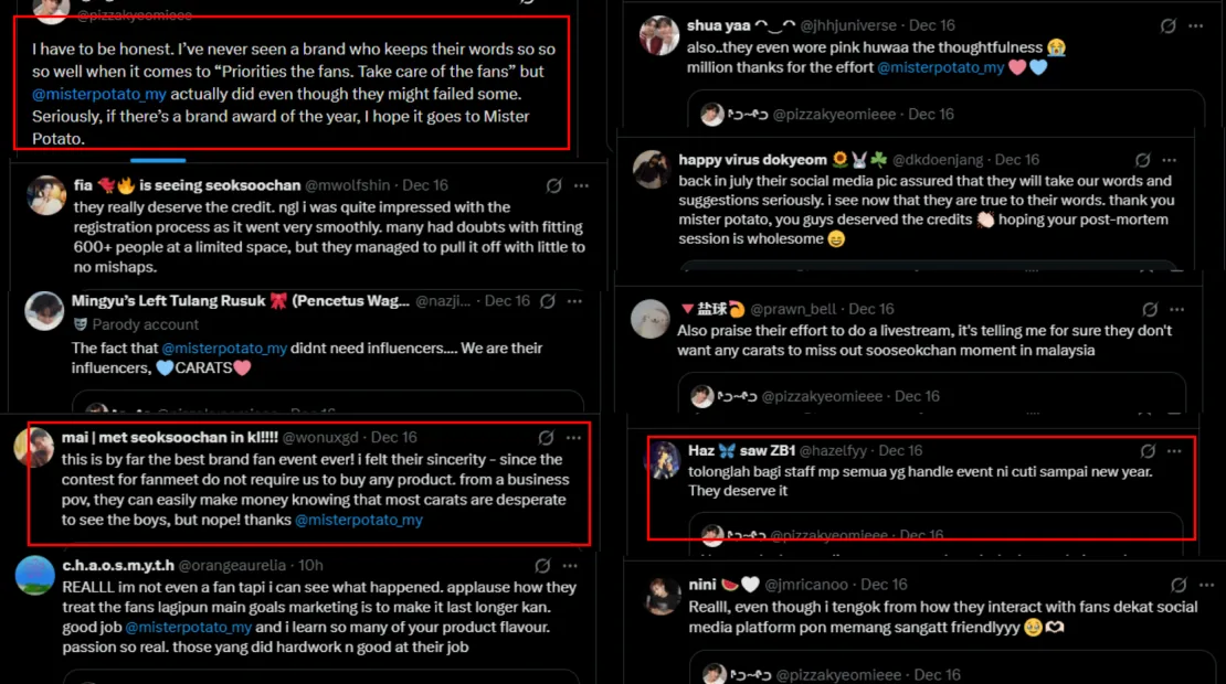 Many fans took to Twitter to praise the Mister Potato team and Mr Pang for looking after attendees, providing transparency, and clarifying details about the event. Some even described the fan meeting as the best they had attended so far, noting that everything ran more smoothly than expected — from registration and crowd control to ensuring fans were comfortable throughout.