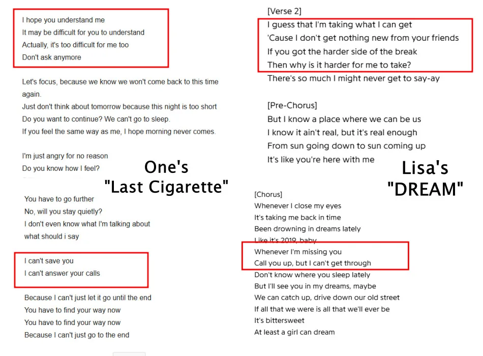 The speculation arose from similarities between the lyrics of the BLACKPINK member’s “DREAM” and the male singer’s “Last Cigarette”. Fans believe the Thai artist may have been responding to his song through her own lyrics, as they appear to align closely. In addition, some fans pointed out that the date Lisa posted photos of a lake (a prominent image in the short film) was around the same time ONE released his album “PRVT 01”, a project centred on separation and loss.